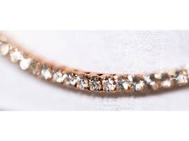 - 14kt rose gold diamond tennis bracelet set with 5.00 carat total weight round brilliant cut natural diamonds.
