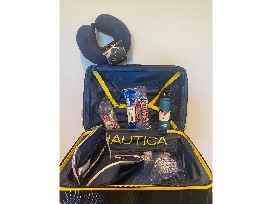 - Ultra lightweight Nautica 21" carry-on size hardshell spinner suitcase with a 25% expansion zipper for more packing capacity, top, side and bottom handles for easy lifting, zippered mesh pocket on inside, plus tie down straps for compression, push-button locking trolley handle