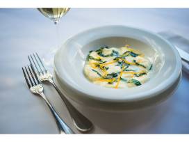 The legendary roast chicken for two - served with warm bread salad, red mustard greens, currants, and pine nuts - is one of San Francisco's most beloved dishes. Pair it with a dozen oysters, a Caesar, and something from the quietly excellent wine list, and you have a perfect evening.