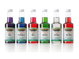 Shaved Ice Syrup: Hawaiian shaved ice syrup in six assorted flavors: cherry, grape, blue raspberry, tiger's blood, lemon-lime, and pina colada. Each bottle is 16oz.