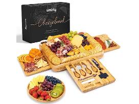 Charcuterie Board: Impress your guests with this skillfully designed meat and cheese tray. With a ton of beneficial features, this charcuterie board gift set with charcuterie accessories makes entertaining fun and easy. The wooden serving platter is the largest on the market, so you'll have no trouble throwing an epic gathering! The set includes a serving board & round tray, ceramic bowls, wine opener, serving forks, cheese knives, slate labels, and chalk markers.