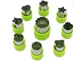Vegetable Cutter Set: These vegetable cutters are made with food grade stainless steel and plastic silica gel material. The simply stainless-steel design is easy to clean, dishwasher safe, and kind to hands. Nine different shapes and sizes are featured, including rabbit, bear, strawberry, mushroom, star, heart, flower, and lace.