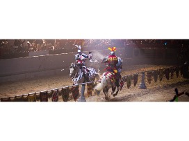 Join us in our 11th century style castle to experience the pageantry and excitement of a live-action tournament. Our electrifying two-hour show features heroic knights on magnificent horses displaying dressage, astounding athletic feats, and thrilling swordplay that have become fan favorites of this unique entertainment experience. Enjoy a "hands-on" four-course feast as the performance unfolds.