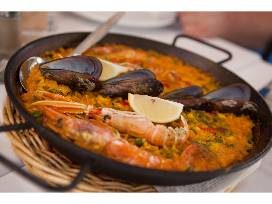 A hands-on cooking class making paella