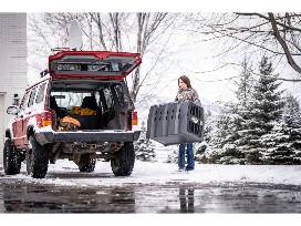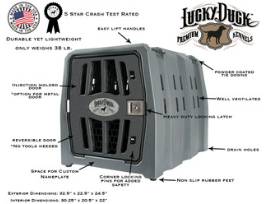 With a patented design, this kennel is durable yet light enough for any member of the family to easily move it. The injection molded door features a quick flip design allowing the door to be reversed in a matter of seconds. In addition, the locking paddle latch will keep your dog safe and only requires one hand for opening. Specifically placed ventilation holes keep your dog cool on hot days, and the pitched floor is elevated to run water away from your dog into the drain channels on each side of the kennel. Drain holes have been strategically located for quick and easy clean up. Multiple kennels can be stacked for easy storage. Other features include: integrated powder coated tie downs, non-slip rubber feet, and heavy duty lift handles.