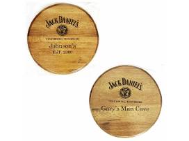 Made in Lynchburg, Tennessee from authentic Jack Daniel Whiskey barrel heads, the personalized barrel head is sure to impress your guests. Personalize with 1-2 lines of text in the provided fields. Each barrel head is unique, no two are alike. There will be some slight variations from the picture