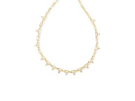 Lindy Gold Crystal Chain Necklace in White Crystal