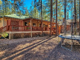 Located in the picturesque Pinetop Country Club, this stylish 3 bedroom/2 bath mountain home (sleeps up to 6) sits on a half acre wooded lot and provides 1,500 square feet of living space, modern conveniences, a spacious fenced in back yard with stone crafted fire pit, trampoline, and hammock. Its the perfect mountain getaway for families wanting opportunities for family fun and relaxation!
