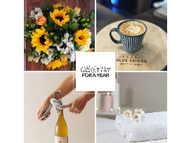 - For your Anniversary: $150 Gift Card to Friday Flowers and a bottle of wine + Rabbit Corkscrew
