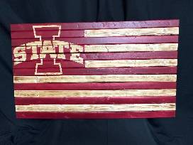Hey Cyclone Fans! Thanks to Dale Howard Auto Center here is your chance for four tickets to an ISU football home game of your choice in 2024. Also includes a hand-crafted Iowa State Cyclones wood flag. Flag measures roughly 32" x 19".