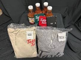 - $40 to Tasty Tacos along with a gift basket including koozies, one medium hoodie and one XL hoodie along with two bottles of Tasty Taco mild sauce and two bottles of Tasty Taco hot sauce.