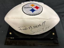 Pittsburgh Steelers signed football by former running back and ESPN analyst Merril Hoge. Includes collector's display case.