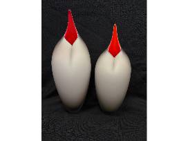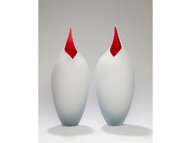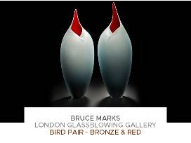 Two (2) stunning glass sculptures, "Birds - Bronze & Red" by artist Bruce Marks. These special items are freeblown and hand-etched, from London Glassblowing, the UK's premier glassblowing art studio.