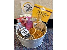A fun basket of goodies from All The Good Stuff, located in Edwards. This basket includes: