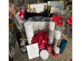 Beautiful basket full of over 15 Wella,and OPI luxury products. A black makeup bag is also included.