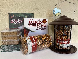 This package includes a Tidy Bird Feeder, 2 cylinders of bird seed, 1 suet cage with 3 suets and the Joy of Bird Feeding Book.