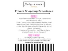 - This two hour shopping experience is during closed hours, so you have the whole boutique to yourself