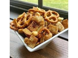 This mix is made to order and packaged fresh. Maggie personally mixes the seasonings and bakes the ingredients. Made with Chex, pretzels, peanuts, rye crisps and more. It is a favorite of our staff and guests!