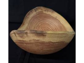 Live edge, handcrafted 12.5"x5" yellow locust bowl. Perfect for a family fruit bowl on counter or table. Harvested from locust tree in Hudson Wisconsin, finished with a food safe penetrating oil, and then buffed to sheen. Locust is a very hard, dense wood, that turns and finishes well, with soft grain patterns and color variations.