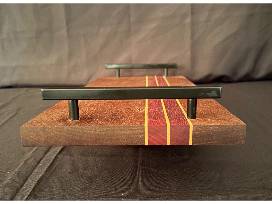 Elevate your dining and entertaining experience with this stunning Bubinga Wood Serving Tray adorned with exquisite walnut and maple inlay. Crafted by the skilled artisan, Craig Yolitz, this one-of-a-kind tray is not just functional; it's a work of art that will elevate your culinary presentations.