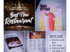 Diners are flocking to Promenade Place, a strip mall in Eagan, to Kitchen and Rail. This new restaurant opened in 2022 to rave reviews and boasts an eclectic menu and decor. Kitchen and Rail was voted as THE BEST NEW RESTAURANT in the Twin Cities in May 2023 in the Mpls.St.Paul Magazine Reader Poll!