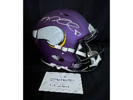About the Signed Helmet: TJ Hockenson, a rising star in the NFL and Minnesota Vikings Tight End, has left his mark on the field with exceptional talent and skill. Now, you have the chance to own a helmet that embodies the essence of the game, personally signed by this football sensation. Whether you're a dedicated Vikings fan or simply an admirer of football greatness, this helmet is the ultimate addition to your collection.