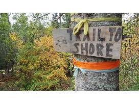 -Walking path through the woods to the shore.