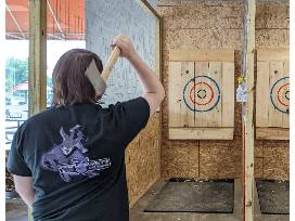Come for a fun filled time to throw an axe! These gift cards are good for 4 people to throw axes for 1 hour each at Perple Bunny's Axe House in Inver Grove Heights. An axe master will guide you through sticking your first bullseye, and lead your crew in any games. Go individually four times or pull together a group for a group throwing experience. Make sure you are prepared to laugh and have a good time!