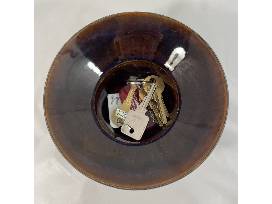 This beautiful artisan bowl could be yours! Hand thrown by a local potter, it is perfect for holding keys, tchotchkes, and more. This bowl will look beautiful displayed in your home.