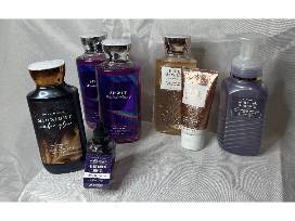 Bath & Body Works Purple Basket - Pure Wonder shower gel & body cream, Secret Wonderland shower gel, White Oak & Vanilla hand soap, Midnight Amber Glow body lotion, and Black Cherry Merlot wallflower