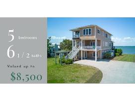 A one-week stay at the Boat House cottage, an exquisite Sand Castle home in Emerald Isle, from October 6, 2024, to April 6, 2025, excluding holidays. This soundfront home has breathtaking views of Bogue Sound and luxury amenities to