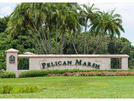 This is a 3 bedroom 1 1/2 bath home in the Pelican Marsh gated community. Equipped with a small pool with outdoor pool deck seating inside of screened in lanai. Screened in sitting area off of the master bedroom and kitchen. Access to Community Center with outdoor restaurant/bar, tennis, pickleball, and fitness center.