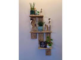 1Custom made shelf assembled from driftwood found on the banks of the Ohio River. Shelf has three layers and is perfect for an outdoor patio or sunroom to hold your plants and cherished items.