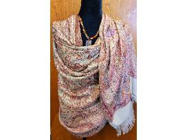 Weavers Villa Fringed Scarf in Tan and Orange Tones.