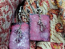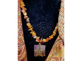 Fire Colored Glass and Stone Bead Copper Enamel Necklace & Earrings. (Length is adjustable).