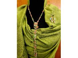 Handcrafted Artisan Glass and Stone Bead Single Strand Necklace to be Knotted. Matching Drop Bead Earrings.