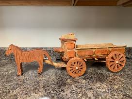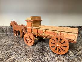 Handmade wooden horse drawn wagon.