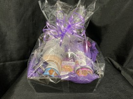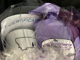 Basket includes: $25 gift certificate to St. Regis Gift Shop, Montana coffee mug, Montana cookie cutter, and a variety of huckleberry goodies