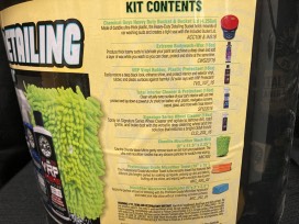 All the supplies you need plus a bucket to keep the supplies in and a seat for those lower tasks like wheels and running boards.