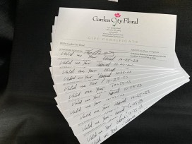 12 gift certificates each good for a $60 flower arrangement from Garden City Floral plus an arrangement the night of the auction.