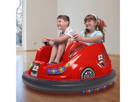Flybar 12V Bumper Car XL battery powered ride on is the perfect car for boys, girls, kids, teens, and adults. Electric vehicle 2-seater ride on has a 12V rechargeable battery (charger included) and holds up to 175 lbs. Built with fun and safety in mind, this adult bumper car comes with a durable plastic shell, anti-flat wheels, and soft rubber bumper that protects walls and furniture.