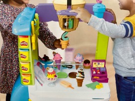 CREATE, CUSTOMIZE, CHECK OUT: With this Play-Doh ice cream set, make treats with soft serve machine and scooping station, decorate with sprinkle maker, tools, and molds, and ring up customers at register