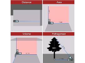 - MULTIPLE MEASUREMENT FEATURES ? Area, distance, length, volume, continuous measurement, Pythagorean method-three points; Addition and subtraction; Low battery indication; 20 groups data memory; Manually delete data; Auto shut down after 150s without any operation to save power