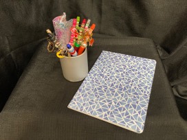 Set also includes a pen holder and journal.