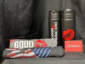 2 coffee tumblers, 2 shirts, and a $40 gift card to Good Americano
