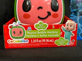 COCOMELON BUBBLE MACHINE FOR TODDLERS: Designed with kids in mind the Cocomelon No Spill Bubble Machine is designed to help children learn with bubbles. Features your child's favorite CoComelon Melon character and plays an excerpt from the CoComelon Wheels on the Bus song featured on the Cocomelon TV Show. The perfect bubble machine for your toddler.