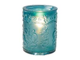 Features Ree's signature Amelia embossed patterns over teal-colored glass.
