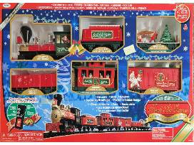 The 16 track pieces create a perfect platform for this train to chug along on. Real train sounds, cheerful music and a light-up caboose add a whimsical finishing touch, and the engine, coal, skating and box cars give this set a realistic look. This North Pole Express Christmas train set comes with a remote control for easy operation.