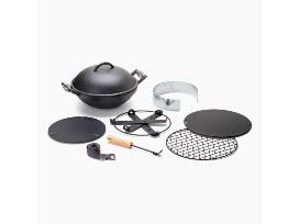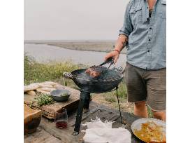 The All-in-One Cast Iron Grill is an outdoor cook's dream. A cast iron base and domed lid, grill grate, baking steel, tripod stand, and coal tray combine in countless configurations to expand your outdoor dining options. Done cooking? Pack it all down into a single self-contained bundle to minimize what you carry.