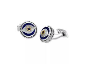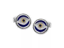 1"Crazy 'bout a sharp-dressed man!" Round lapis stones are paired with blue sapphires in these two-tone men's evil eye cufflinks from EFFY. Made of sterling silver and 18k gold, they will jazz up any shirt and take your style to the next level!